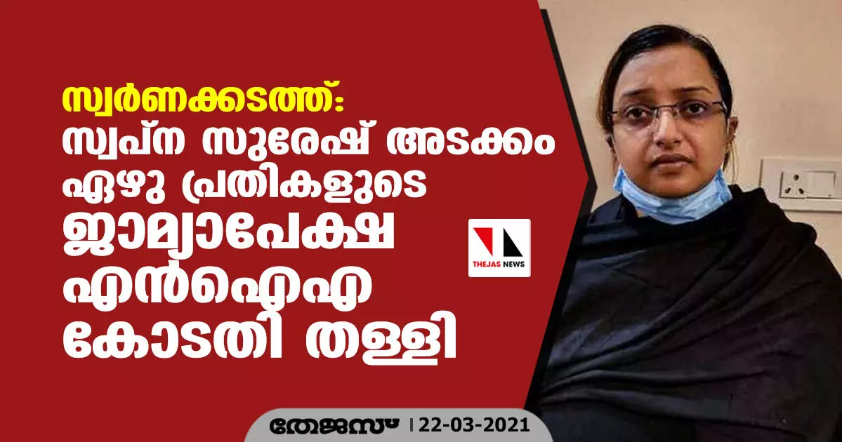 സ്വര്ണ്ണക്കടത്ത്: സ്വപ്ന സുരേഷ് അടക്കം ഏഴു പ്രതികളുടെ ജാമ്യാപേക്ഷ എന് ഐ എ കോടതി തള്ളി