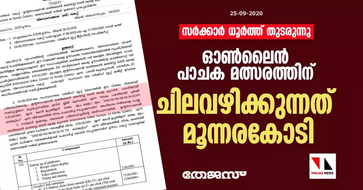 സർക്കാർ ധൂർത്ത് തുടരുന്നു; ഓൺലൈൻ പാചക മത്സരത്തിന് ചിലവഴിക്കുന്നത് മൂന്നരകോടി