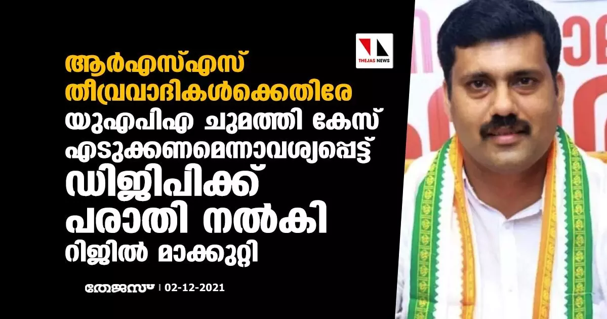 ആര്എസ്എസ് നേതൃത്വത്തില് തലശ്ശേരി ടൗണില് സംഘടിപ്പിച്ച റാലിയില് നമ്മുടെ നാട്ടില് നിലനില്ക്കുന്ന മത സൗഹാര്ദ്ദം തകര്ക്കുന്ന രീതിയില് മുദ്രാവാക്യം വിളിച്ചെന്ന് റിജില് മാക്കുറ്റി പരാതിയില് പറയുന്നു.