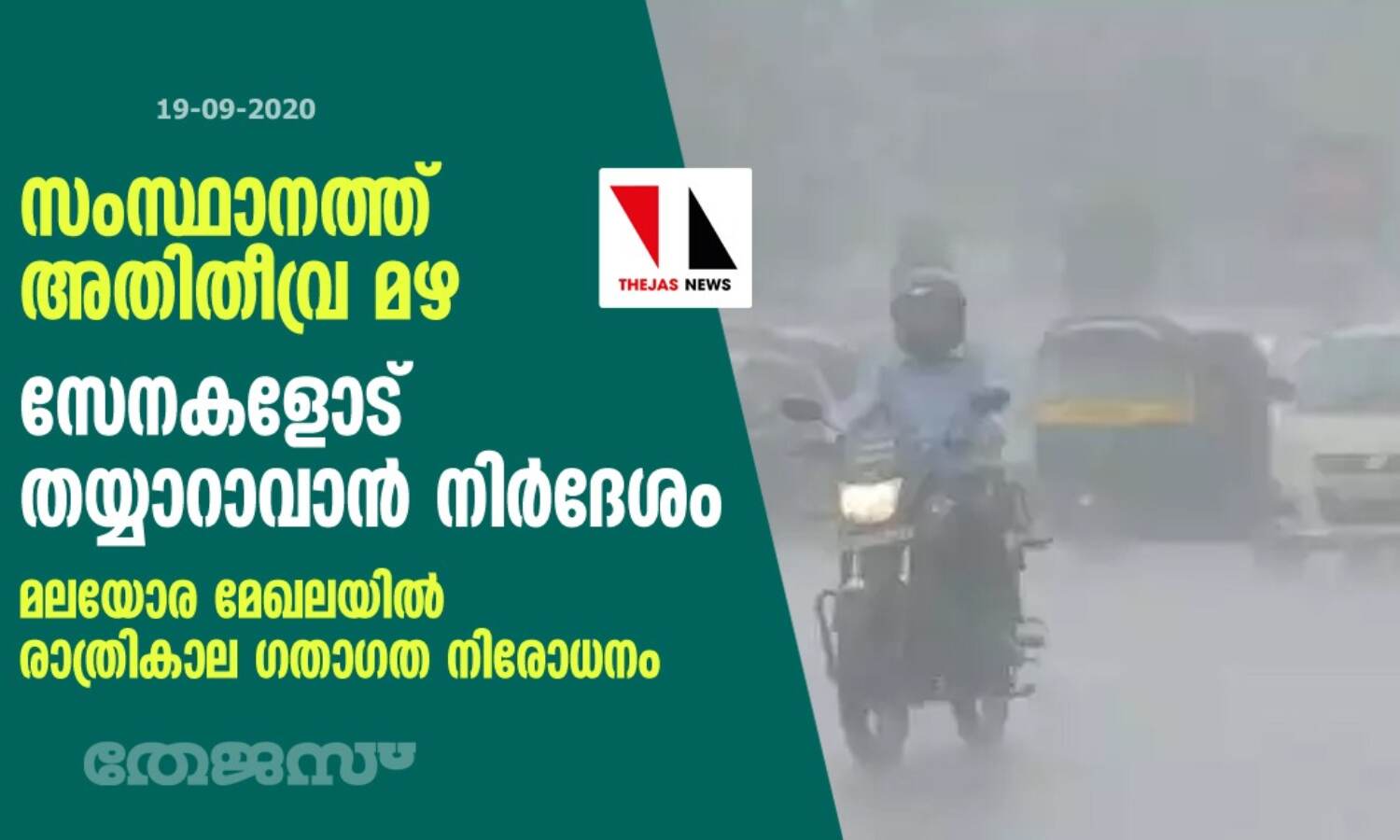 സംസ്ഥാനത്ത് അതിതീവ്ര മഴ: സേനകളോട് തയ്യാറാവാൻ നിർദേശം; മലയോര മേഖലയിൽ ഗതാഗത നിരോധനം