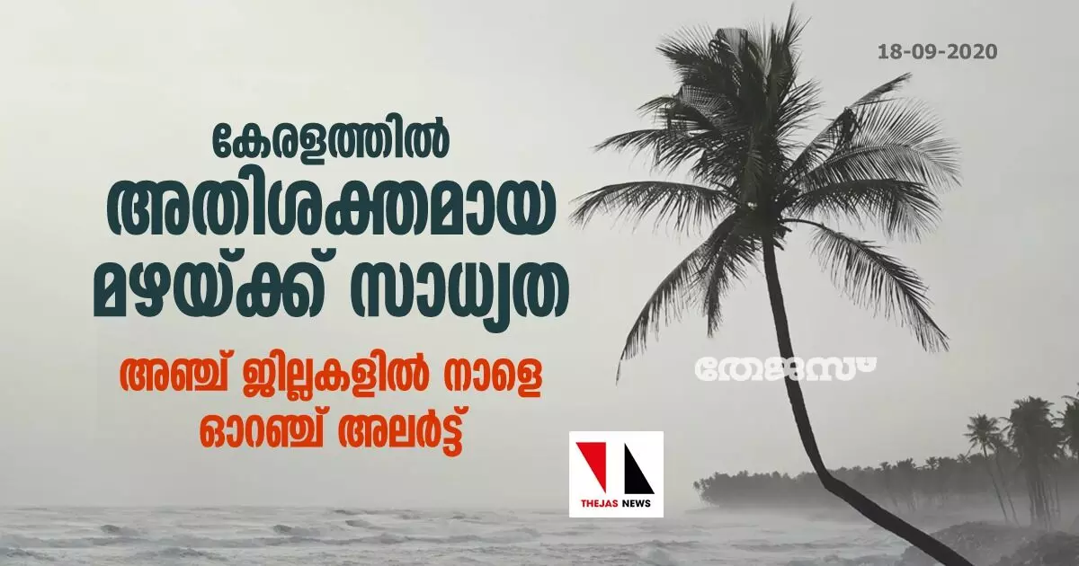 കേരളത്തിൽ അതിശക്തമായ മഴയ്ക്ക് സാധ്യത; അഞ്ച് ജില്ലകളിൽ നാളെ ഓറഞ്ച് അലർട്ട്