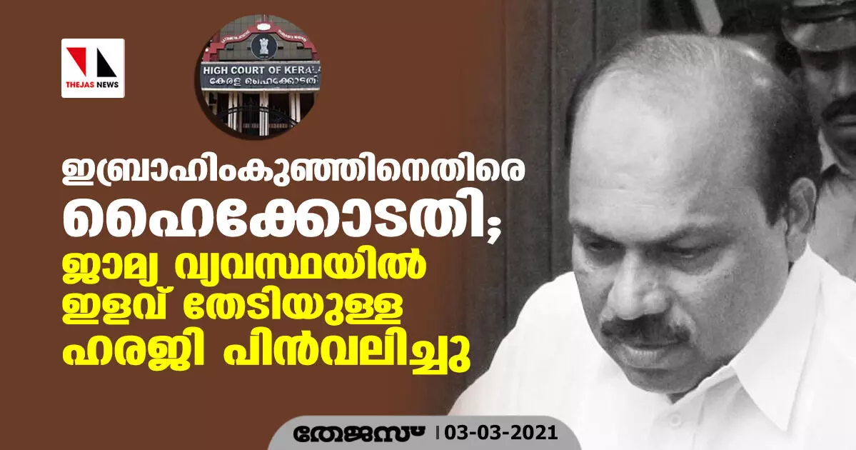 ഇബ്രാഹിംകുഞ്ഞിനെതിരെ ഹൈക്കോടതി;ജാമ്യ വ്യവസ്ഥയില് ഇളവ് തേടിയുള്ള ഹരജി പിന്വലിച്ചു