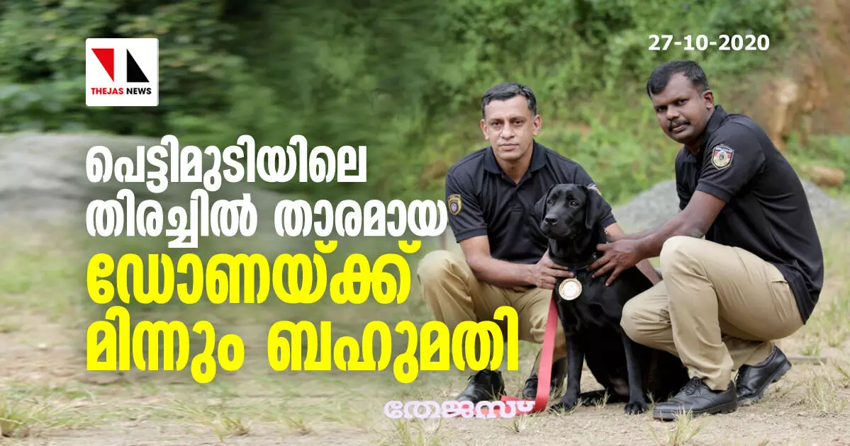 പെട്ടിമുടിയിലെ തിരച്ചില് താരമായ ഡോണയ്ക്ക് മിന്നും ബഹുമതി