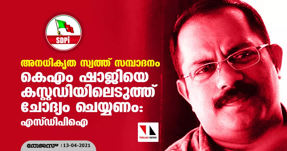 അനധികൃത സ്വത്ത് സമ്പാദനം: കെഎം ഷാജിയെ കസ്റ്റഡിയിലെടുത്ത് ചോദ്യം ചെയ്യണം: എസ്ഡിപിഐ
