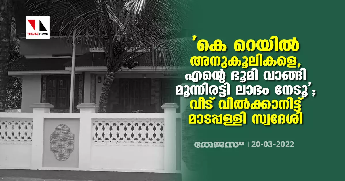 'കെ റെയില് അനുകൂലികളെ, എന്റെ ഭൂമി വാങ്ങി മൂന്നിരട്ടി ലാഭം നേടൂ'; വീട് വില്ക്കാനിട്ട് മാടപ്പള്ളി സ്വദേശി