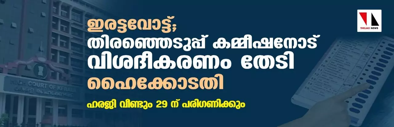 ഇരട്ടവോട്ട്; തിരഞ്ഞെടുപ്പ് കമ്മീഷനോട് വിശദീകരണം തേടി ഹൈക്കോടതി; ഹരജി വീണ്ടും 29 ന് പരിഗണിക്കും