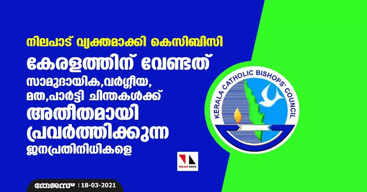 നിലപാട് വ്യക്തമാക്കി കെസിബിസി; കേരളത്തിന് വേണ്ടത് സാമുദായിക,വര്ഗ്ഗീയ,മത,പാര്ട്ടി ചിന്തകള്ക്ക് അതീതമായി പ്രവര്ത്തിക്കുന്ന ജനപ്രതിനിധികളെ