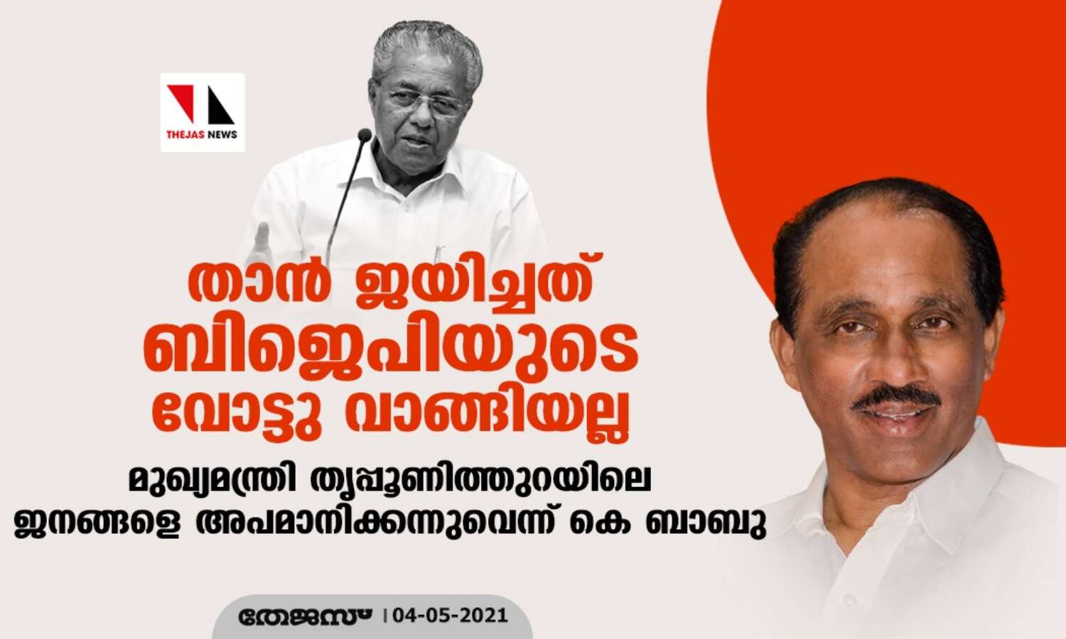 താന് ജയിച്ചത് ബിജെപിയുടെ വോട്ടു വാങ്ങിയല്ല; മുഖ്യമന്ത്രി തൃപ്പൂണിത്തുറയിലെ ജനങ്ങളെ അപമാനിക്കന്നുവെന്ന് കെ ബാബു