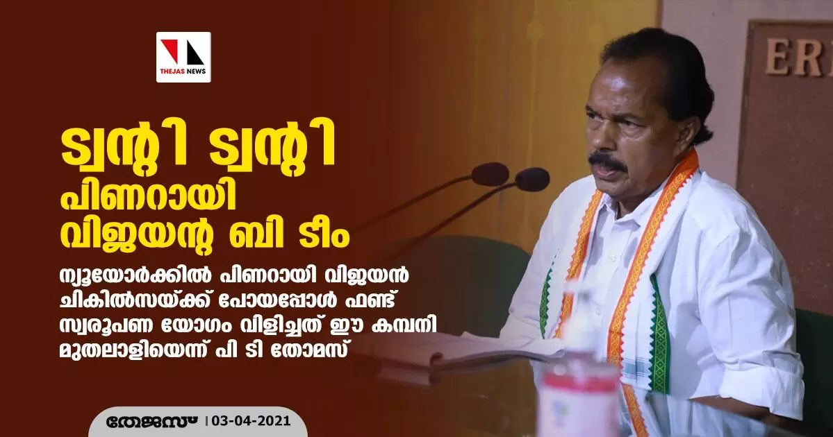 ട്വന്റി ട്വന്റി പിണറായി വിജയന്റ ബി ടീം;ന്യൂയോര്ക്കില് പിണറായി വിജയന് ചികില്സയ്ക്ക് പോയപ്പോള് ഫണ്ടു സ്വരൂപണ യോഗം വിളിച്ചത് ഈ കമ്പനി മുതലാളിയെന്ന് പി ടി തോമസ്