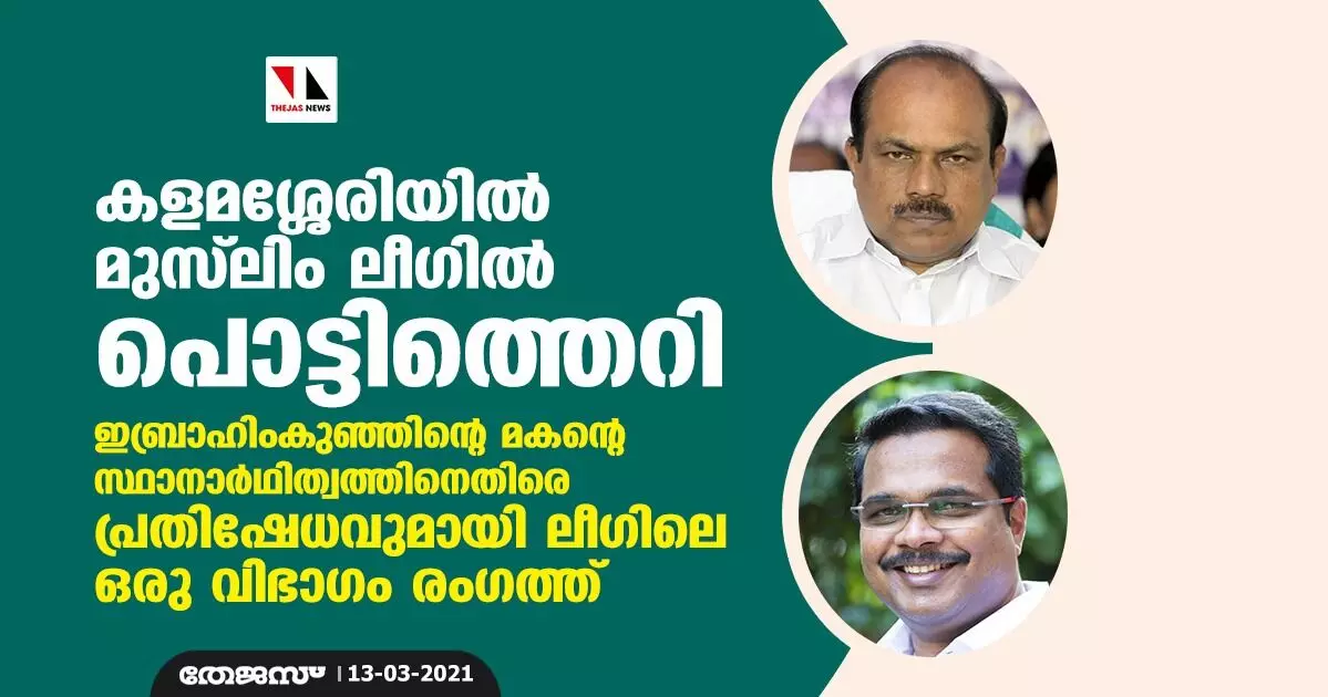 കളമശ്ശേരിയില് മുസ്ലിം ലീഗില് പൊട്ടിത്തെറി;ഇബ്രാഹിംകുഞ്ഞിന്റെ മകന്റെ സ്ഥാനാര്ഥിത്വത്തിനെതിരെ പ്രതിഷേധവുമായി ലീഗിലെ ഒരു വിഭാഗം രംഗത്ത്