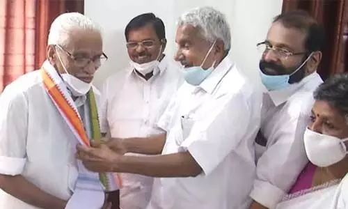 കോട്ടയം: കേരള കോണ്ഗ്രസ് (എം) ജോസ് വിഭാഗത്തില്നിന്നും രാജിവച്ച കെ എം മാണിയുടെ വിശ്വസ്തനും മുതിര്ന്ന നേതാവുമായ ഇ ജെ ആഗസ്തി പി ജെ ജോസഫ് വിഭാഗത്തിനൊപ്പം ചേര്ന്നു. ജോസ് വിഭാഗം എല്ഡിഎഫിനൊപ്പം പ്രവര്ത്തിക്കാന് തീരുമാനിച്ചതില് പ്രതിഷേധിച്ചാണ് ചുവടുമാറ്റം. ജോസഫിനൊപ്പം ജില്ലാ യുഡിഎഫ് നേതൃയോഗത്തിനെത്തിയ ആഗസ്തിയെ കോണ്ഗ്രസ്, കേരള കോണ്ഗ്രസ് നേതാക്കള് ചേര്ന്ന് സ്വീകരിച്ചു. മുന് മുഖ്യമന്ത്രി ഉമ്മന്ചാണ്ടിയാണ് അദ്ദേഹത്തെ ഷാള് അണിയിച്ചത്.