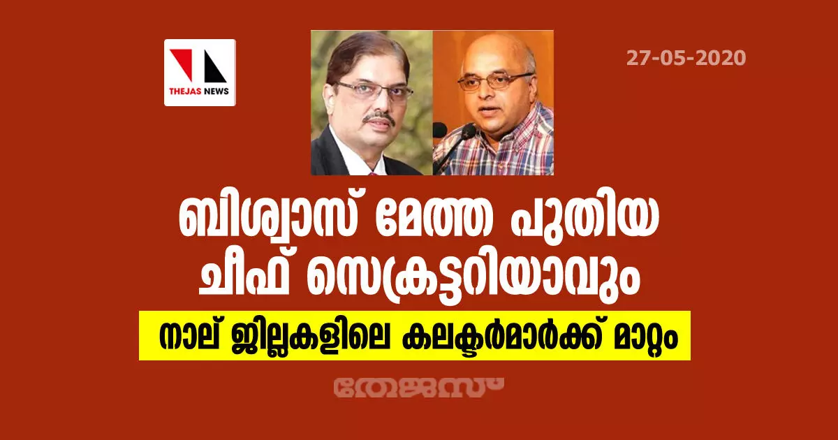 ബിശ്വാസ് മേത്ത പുതിയ ചീഫ് സെക്രട്ടറിയാവും; നാല് ജില്ലകളിലെ കലക്ടര്മാര്ക്ക് മാറ്റം