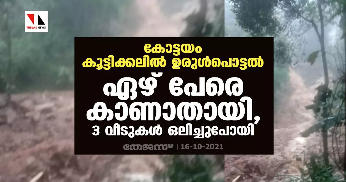 കോട്ടയം കൂട്ടിക്കലിൽ ഉരുൾപൊട്ടൽ: ഏഴ് പേരെ കാണാതായി, 3 വീടുകൾ ഒലിച്ചുപോയി