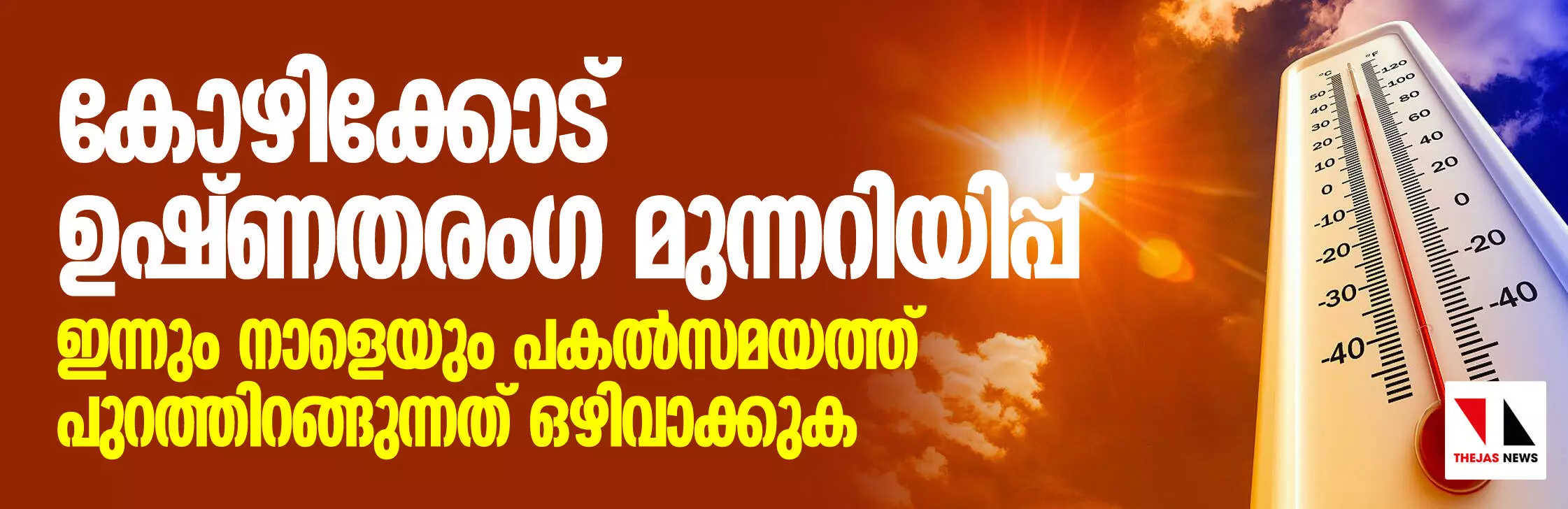 കോഴിക്കോട് ഉഷ്ണതരംഗ മുന്നറിയിപ്പ്; ഇന്നും നാളെയും പകല്സമയത്ത് പുറത്തിറങ്ങുന്നത് ഒഴിവാക്കുക