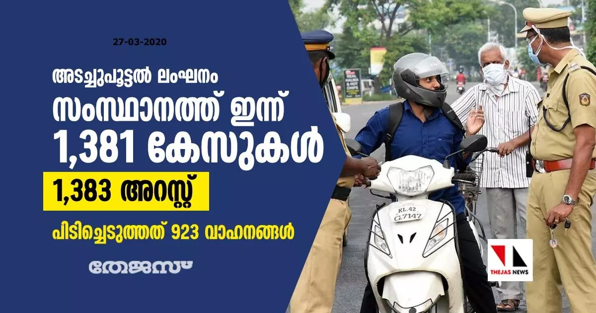 അടച്ചുപൂട്ടല് ലംഘനം: സംസ്ഥാനത്ത് ഇന്ന് 1383 അറസ്റ്റ്; 923 വാഹനങ്ങൾ പിടിച്ചെടുത്തു