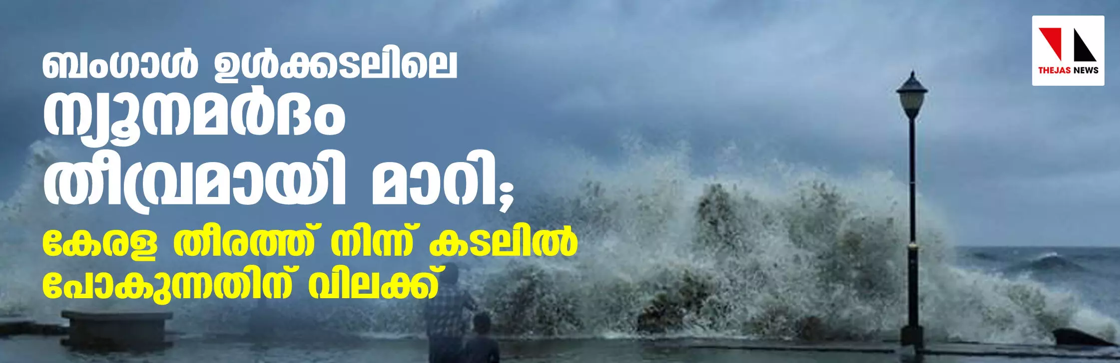 ബംഗാള് ഉള്ക്കടലിലെ ന്യൂനമര്ദം തീവ്രമായി മാറി; കേരള തീരത്ത് നിന്ന് കടലില് പോകുന്നതിന് വിലക്ക്