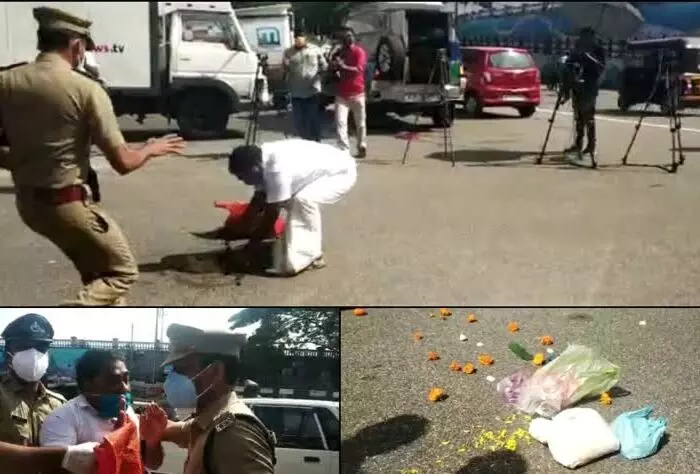 പൂ വില്പനക്കാരുടെ പ്രശ്നങ്ങള്; നിയമസഭക്ക് മുന്നിൽ പൂക്കളമിട്ട് ഒറ്റയാൾ പ്രതിഷേധം