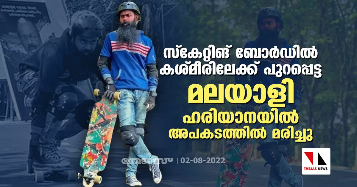 സ്കേറ്റിങ് ബോർഡിൽ കശ്മീരിലേക്ക് പുറപ്പെട്ട മലയാളി ഹരിയാനയിൽ അപകടത്തിൽ മരിച്ചു