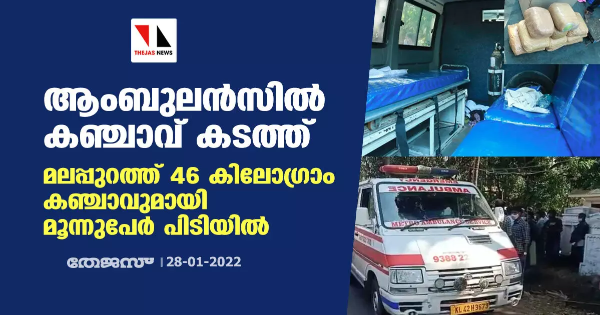 ആംബുലന്സില് കഞ്ചാവ് കടത്ത്; മലപ്പുറത്ത് 46 കിലോഗ്രാം കഞ്ചാവുമായി മൂന്നുപേര് പിടിയില്