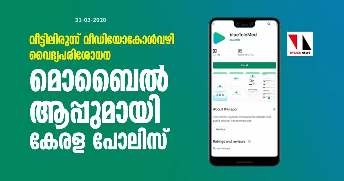വീട്ടിലിരുന്ന് വീഡിയോകോള്വഴി വൈദ്യപരിശോധന; മൊബൈല് ആപ്പുമായി കേരള പോലിസ്