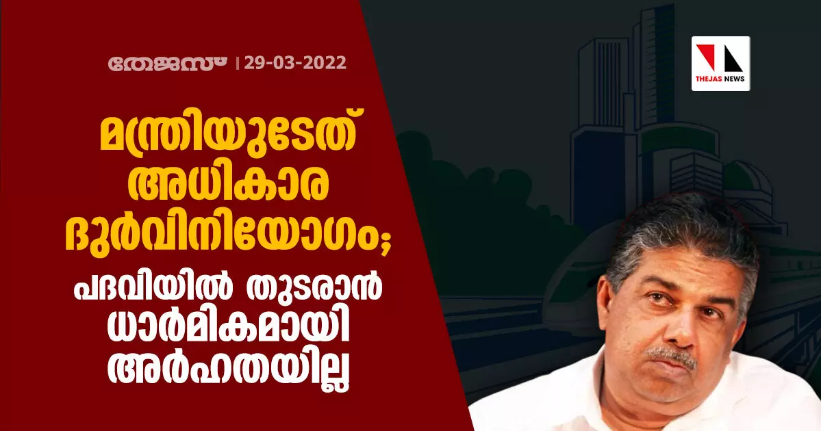 മന്ത്രി സജി ചെറിയാൻ നടത്തിയത് അധികാര ദുർവിനിയോഗം; പദവിയിൽ തുടരാൻ ധാർമികമായി അർഹതയില്ല