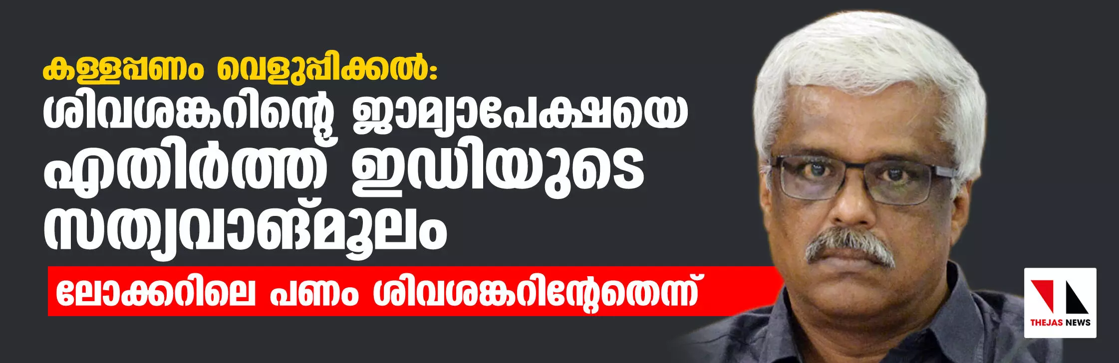 കള്ളപ്പണം വെളുപ്പിക്കല്: ശിവശങ്കറിന്റെ ജാമ്യാപേക്ഷയെ എതിര്ത്ത് ഇ ഡി യുടെ സത്യവാങ്മൂലം, ലോക്കറിലെ പണം ശിവശങ്കറിന്റേതെന്ന്