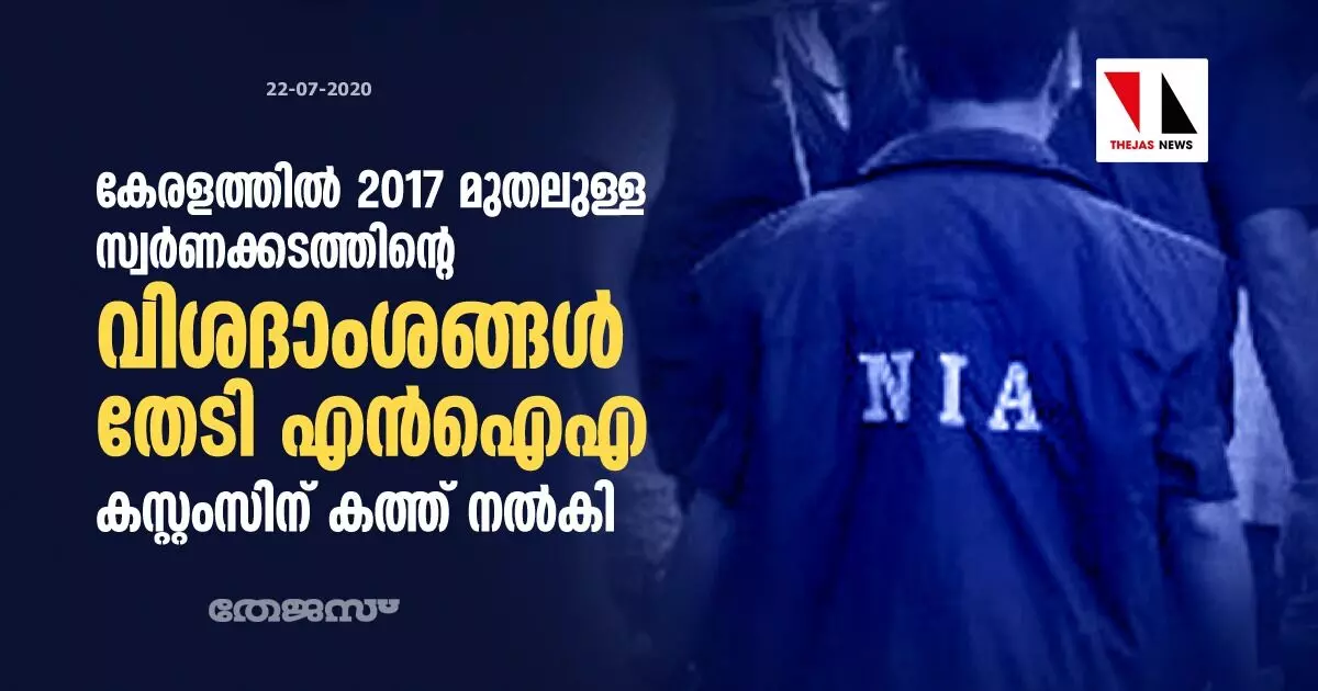 സ്വര്ണക്കടത്ത്: 2017 മുതലുള്ള വിശദാംശങ്ങള് തേടി എൻഐഎ; കസ്റ്റംസിന് കത്ത് നല്കി