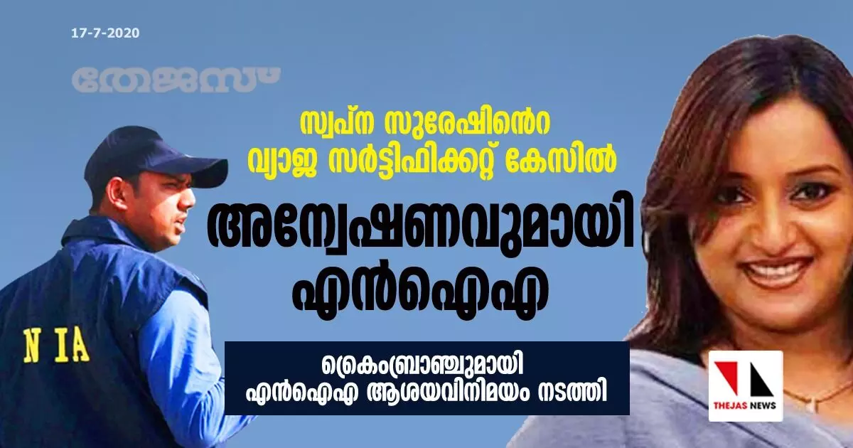 സ്വപ്ന സുരേഷിന്റെ വ്യാജ സര്ട്ടിഫിക്കറ്റ് കേസില് അന്വേഷണവുമായി എൻഐഎ
