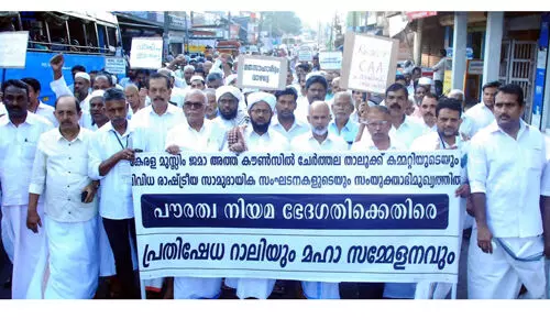 ചേര്ത്തല:പൗരത്വ നിയമ ഭേദഗതിക്കെതിരെ മുസ് ലിം ജമാഅത്ത് കൗണ്സില് താലൂക്ക് കമ്മിറ്റിയും വിവിധ രാഷട്രീയ സാമുദായിക സംഘടനകളും ചേര്ന്ന് പ്രതിഷേധറാലിയും സമ്മേളനവും നടത്തി.ദേശീയപതാകയേന്തി നടത്തിയ പ്രതിഷേധ റാലി മുനിസിപ്പല് മൈതാനിയില് സമാപിച്ചു. തുടര്ന്ന് നടന്ന നടന്ന സമ്മേളനം എ എം ആരിഫ് എംപി ഉദ്ഘാടനം ചെയ്തു.വി ഡി സതീശന് എംഎല്എ മുഖ്യപ്രഭാഷണം നടത്തി. ജാതിയോ മതമോ വ്യാത്യാസമില്ലാതെ കേന്ദ്ര സര്ക്കാരിന്റെ ദേശിയ പൗരത്വ നിയമ ഭേദഗതിക്കെതിരെ യോജിച്ച് പോരാടുമെന്ന് വി ഡി സതീശന് എംഎല്എ പറഞ്ഞു.