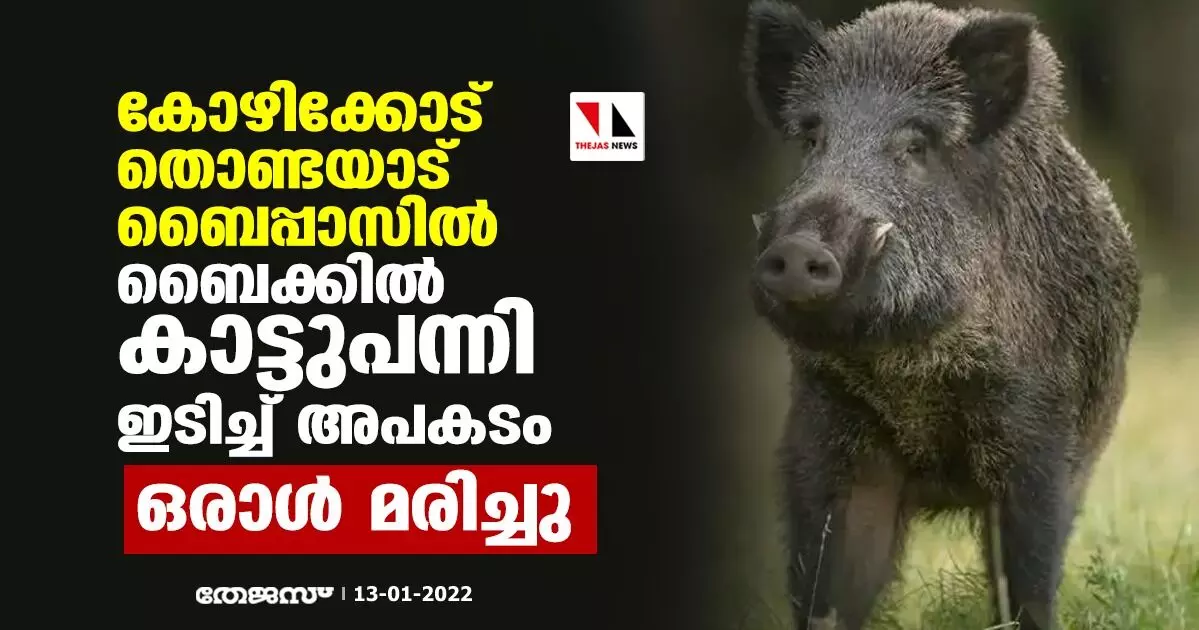 കോഴിക്കോട് തൊണ്ടയാട് ബൈപ്പാസില് ബൈക്കില് കാട്ടുപന്നി ഇടിച്ച് അപകടം: ഒരാള് മരിച്ചു