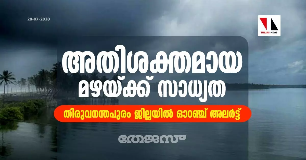 അതിശക്തമായ മഴയ്ക്ക് സാധ്യത; തിരുവനന്തപുരം ജില്ലയിൽ ഓറഞ്ച് അലർട്ട്
