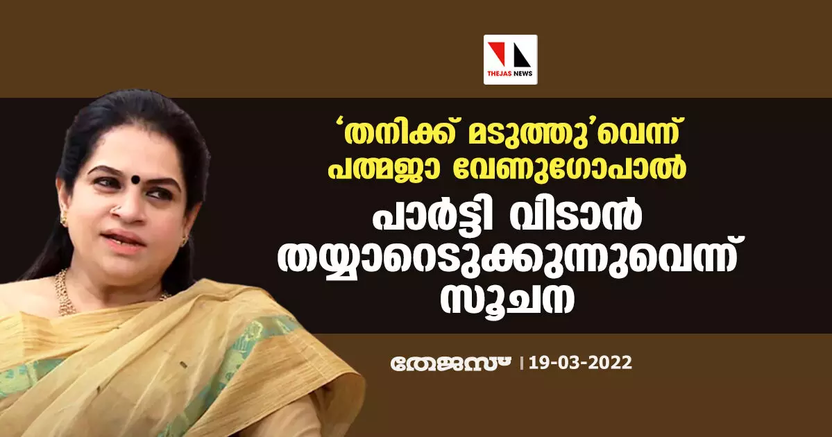 'തനിക്ക് മടുത്തു'വെന്ന് പത്മജാ വേണുഗോപാല്; പാര്ട്ടി വിടാന് തയ്യാറെടുക്കുന്നുവെന്ന് സൂചന