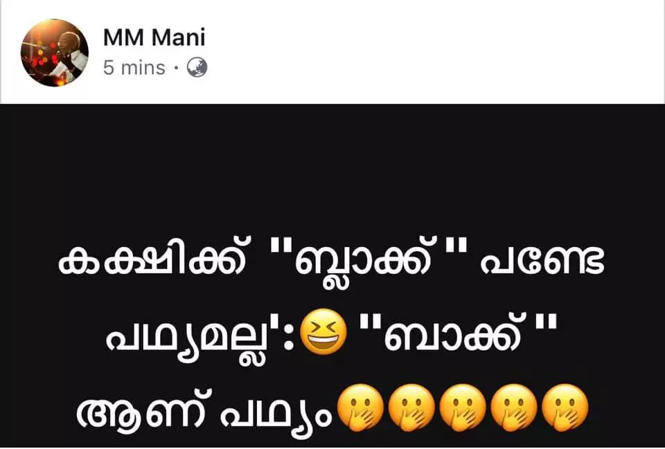 ആലപ്പുഴ: പ്രളയത്തിനു കാരണം 'ബ്ലാക്ക്' മണിയാണെന്നു പറഞ്ഞ് വൈദ്യുതി മന്ത്രി എം എം മണിയെ നിറത്തിന്റെ പേരില് അധിക്ഷേപിച്ച കോണ്ഗ്രസ് നേതാവ് പീതാംബരക്കുറുപ്പിനു കുറിക്കു കൊള്ളുന്ന മറുപടിയുമായി എം എം മണി. 'കക്ഷിക്ക് 'ബ്ലാക്ക്' പണ്ടേ പഥ്യമല്ല, 'ബാക്ക്' ആണ് പഥ്യം' എന്നു പറഞ്ഞ് ഫേസ്ബുക്കിലൂടെയാണ് കുറുപ്പിനു മറുപടി കൊടുത്തിട്ടുള്ളത്. കഴിഞ്ഞ ദിവസം ആറ്റിങ്ങല് മണ്ഡലത്തിലെ നെടുമങ്ങാട് നിയോജക മണ്ഡലം യുഡിഎഫ് കണ്വന്ഷനിടെയാണ് മന്ത്രി എം എം മണിക്കെതിരേ മുന് എംപി കൂടിയായ പീതാംബര കുറുപ്പ് അധിക്ഷേപകരമായ പ്രസ്താവന നടത്തിയത്. പ്രളയത്തിനു കാരണക്കാര് സര്ക്കാരാണെന്ന് പറയുന്നതിനിടെയായിരുന്നു മന്ത്രി മണിക്കെതിരായ പരാമര്ശം. കെപിസിസി മുന് പ്രസിഡന്റ് തെന്നല ബാലകൃഷ്ണന് ഉള്പ്പെടെയുള്ള മുതിര്ന്ന നേതാക്കള് പങ്കെടുത്ത പരിപാടിയിലാണ് പരാമര്ശം. 2013 നവംബര് ഒന്നിന് കൊല്ലത്ത് നടന്ന വള്ളംകളിയുടെ ഉദ്ഘാടന ചടങ്ങിനിടെ പ്രശസ്ത നടിയോട് സ്ഥലം എംപി കൂടിയായിരുന്ന പീതാംബരകുറുപ്പ് അപമര്യാദയായി പെരുമാറിയത് വിവാദമായിരുന്നു. പരാതി നല്കുമെന്ന് പറഞ്ഞ നടിയോട് ഒടുവില് മാപ്പ് പറഞ്ഞാണ് വിവാദം അവസാനിപ്പിച്ചത്. ഈ സംഭവത്തെ ഓര്മിപ്പിച്ചാണ് എം എം മണിയുടെ ഫേസ്ബുക്ക് പോസ്റ്റ്. എം എം മണിയുടെ ഫേസ്ബുക്ക് പോസ്റ്റുകള് വഴിയുള്ള ട്രോളുകള് നേരത്തെയും വലിയ ശ്രദ്ധ നേടിയിരുന്നു. കോണ്ഗ്രസ് നേതാക്കള് ബിജെപിയിലേക്ക് പോവുന്നതിനെ ട്രോളിക്കൊണ്ട്, അവസാനം പോവുന്നവര് ഫാനും ലൈറ്റും ഓഫ് ചെയ്യണമെന്നും വൈദ്യുതി അമൂല്യമാണെന്നും സേവ് ഇലക്ട്രിസിറ്റി എന്നുമുള്ള പോസ്റ്റ് ഏറെ രസകരമായിരുന്നു. മാത്രമല്ല, കോണ്ഗ്രസ് സ്ഥാനാര്ഥി നിര്ണയം വൈകുന്നതിനെതിരേയും ട്രോളുമായി എം എം മണി രംഗത്തെത്തിയിരുന്നു. ഏതായാലും പീതാംബരക്കുറുപ്പിന്റെ മോശം പ്രയോഗത്തിനെതിരേ സാമൂഹിക മാധ്യമങ്ങളിലും പ്രതിഷേധം ശക്തമാണ്.