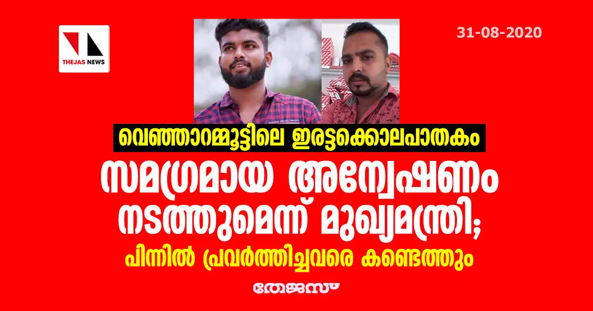 വെഞ്ഞാറമ്മൂട്ടിലെ ഇരട്ടക്കൊലപാതകം: സമഗ്രാന്വേഷണം നടത്തുമെന്ന് മുഖ്യമന്ത്രി; പിന്നിൽ പ്രവർത്തിച്ചവരെ കണ്ടെത്തും