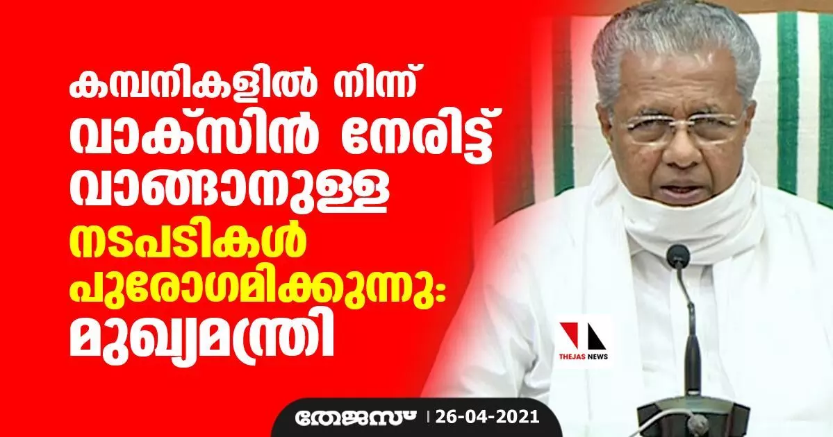 കമ്പനികളിൽ നിന്ന് വാക്സിൻ നേരിട്ട് വാങ്ങാനുള്ള നടപടികൾ പുരോഗമിക്കുന്നു: മുഖ്യമന്ത്രി