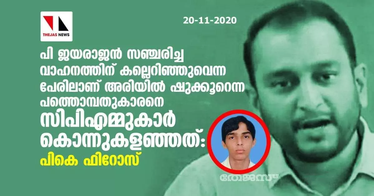 പി ജയരാജന് സഞ്ചരിച്ച വാഹനത്തിന് കല്ലെറിഞ്ഞുവെന്ന പേരിലാണ് അരിയില് ഷുക്കൂറെന്ന പത്തൊമ്പതുകാരനെ സിപിഎമ്മുകാര് കൊന്നുകളഞ്ഞത്: പികെ ഫിറോസ്