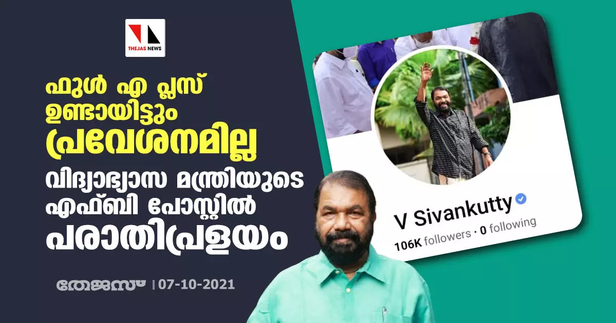ഫുള് എ പ്ലസ് ഉണ്ടായിട്ടും പ്രവേശനമില്ല; വിദ്യാഭ്യാസ മന്ത്രിയുടെ എഫ്ബി പോസ്റ്റില് പരാതിപ്രളയം