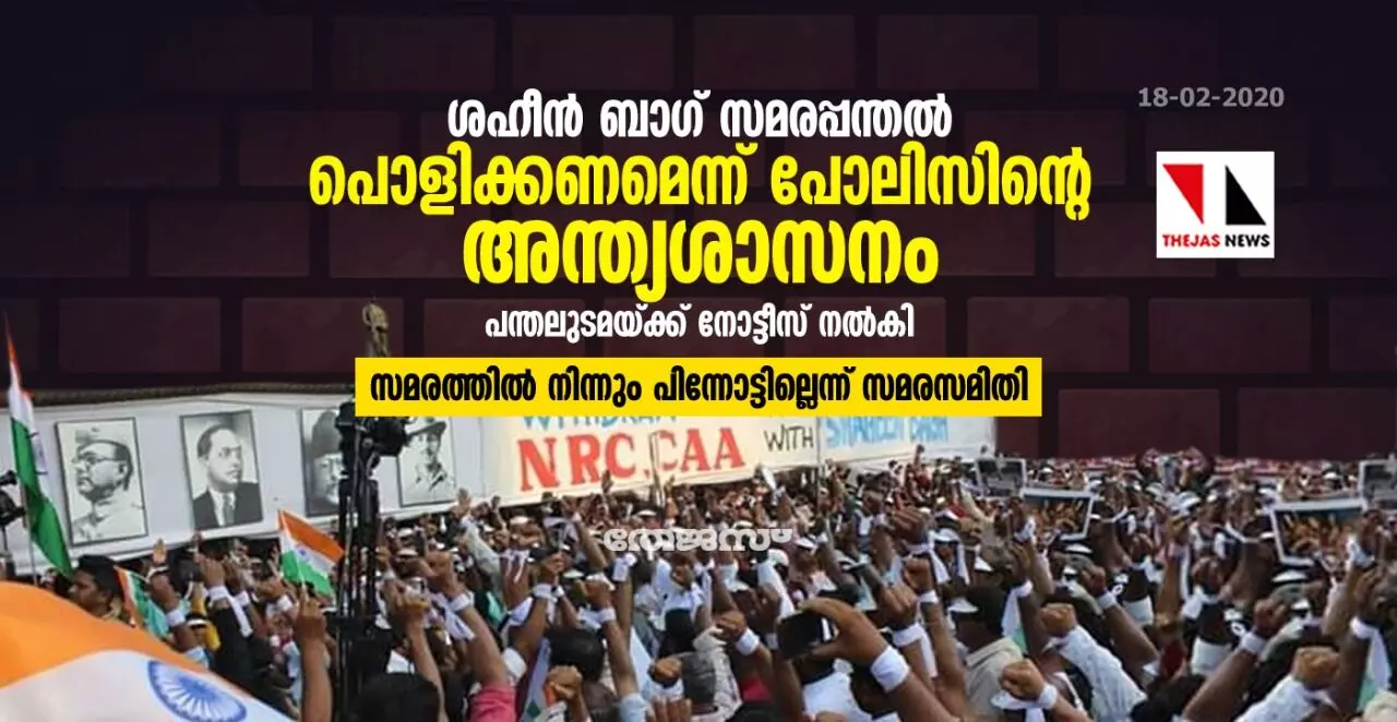 ശഹീൻബാഗ് സമരപ്പന്തൽ ഉടൻ പൊളിക്കണമെന്ന് പോലിസിന്റെ അന്ത്യശാസനം
