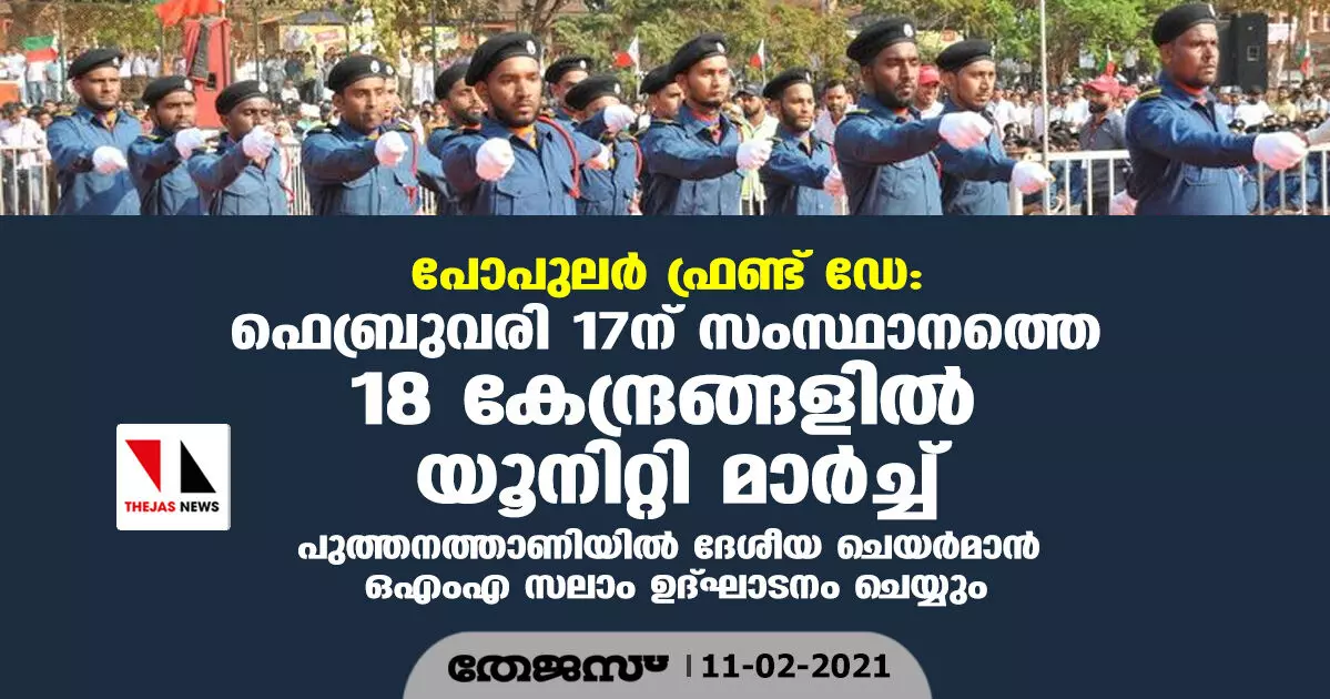 പോപുലര് ഫ്രണ്ട് ഡേ: ഫെബ്രുവരി 17ന് സംസ്ഥാനത്തെ 18 കേന്ദ്രങ്ങളില് യൂനിറ്റി മാര്ച്ച്