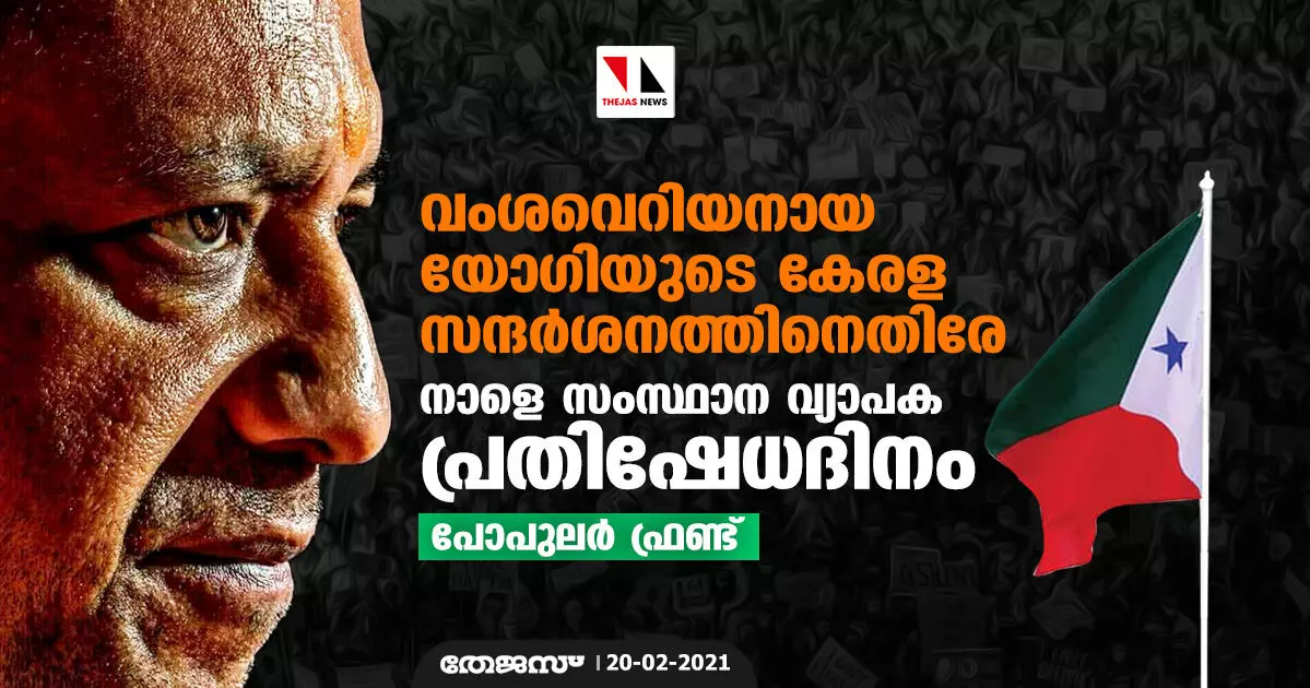 വംശവെറിയനായ യോഗിയുടെ കേരള സന്ദര്ശനത്തിനെതിരേ നാളെ സംസ്ഥാന വ്യാപകമായി പ്രതിഷേധദിനം: പോപുലര് ഫ്രണ്ട്