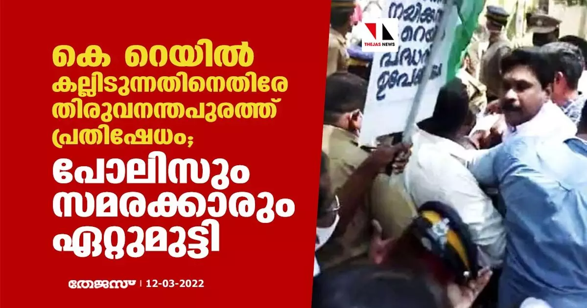 കെ റെയില് കല്ലിടുന്നതിനെതിരേ തിരുവനന്തപുരത്ത് പ്രതിഷേധം; പോലിസും സമരക്കാരും ഏറ്റുമുട്ടി