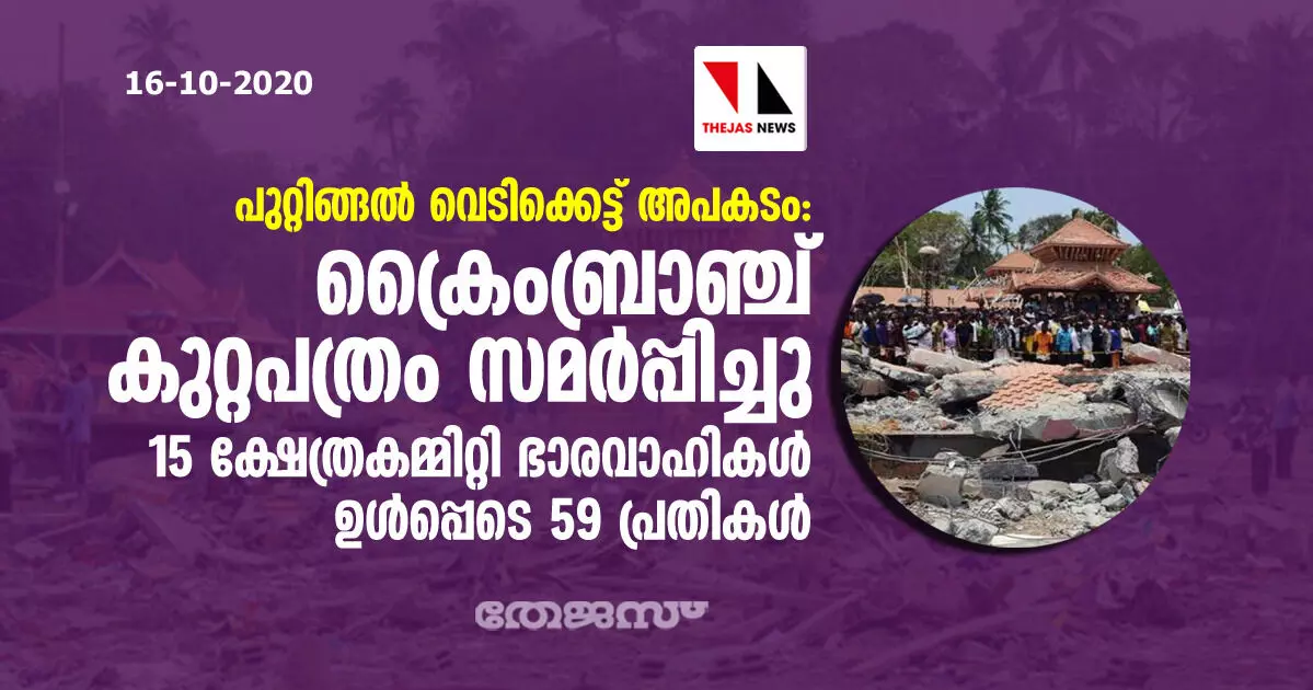 പുറ്റിങ്ങല് വെടിക്കെട്ട് അപകടം: ക്രൈംബ്രാഞ്ച് കുറ്റപത്രം സമര്പ്പിച്ചു; 15 ക്ഷേത്രകമ്മിറ്റി ഭാരവാഹികള് ഉള്പ്പെടെ 59 പ്രതികള്
