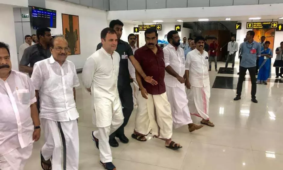 കോഴിക്കോട്: ലോക്സഭാ തിരഞ്ഞെടുപ്പില് വയനാട്ടില് മല്സരിക്കുന്ന യുഡിഎഫ് സ്ഥാനാര്ഥി രാഹുല് ഗാന്ധി കോഴിക്കോട്ടെത്തി. മുകുള് വാസ്നിക്, കെസി വേണുഗോപാല്, രമേശ് ചെന്നിത്തല, മുല്ലപ്പള്ളി രാമചന്ദ്രന്, ഉമ്മന് ചാണ്ടി, ഇടി മുഹമ്മദ് ബഷീര്, കുഞ്ഞാലിക്കുട്ടി തുടങ്ങിയ നേതാക്കള് രാഹുലിനെ സ്വീകരിച്ചു. നിരവധി പ്രവര്ത്തകര് രാഹുലിനെ സ്വീകരിക്കാന് വിമാനത്താവളത്തിനു പുറത്തു കാത്തുനിന്നിരുന്നു. സഹോദരി പ്രിയങ്കയും രാഹുലിനൊപ്പം കോഴിക്കോട്ടെത്തിയിട്ടുണ്ട്. കോഴിക്കോട് വെസ്റ്റ്ഹില്ലിലെ പിഡബ്ല്യുഡി ഗസ്റ്റ്ഹൗസിലെത്തിയ രാഹുലിനൊപ്പം 20 ലധികം കോണ്ഗ്രസ് നേതാക്കളുമുണ്ട്. നാമനിര്ദേശ പത്രിക സമര്പ്പിക്കാനായി നാളെ രാവിലെ ഒമ്പത് മണിക്ക് രാഹുല് കല്പറ്റയിലേക്കു പോവും. കല്പറ്റ ടൗണില് റോഡ് ഷോ നടത്തിയാണ് രാഹുല് പത്രിക നല്കാനെത്തുക എന്നു കോണ്ഗ്രസ് വൃത്തങ്ങള് അറിയിച്ചു. കല്പറ്റ പഴയ ബസ് സ്റ്റാന്ഡില്നിന്നു കലക്ടറേറ്റ് പരിസരം വരെയായിരിക്കും റോഡ് ഷോ. എകെ ആന്റണി ഉള്പ്പെടെയുള്ള നേതാക്കള് പത്രിക സമര്പ്പണത്തിന് രാഹുലിനൊപ്പമുണ്ടാവുമെന്നാണു കരുതുന്നത്. 11.30ന് കലക്ടറുടെ ചേംബറിലെത്തി പത്രിക നല്കും. ഐജി എംആര് അജിത്ത് കുമാര്, സിറ്റി പോലിസ് മേധാവി എവി ജോര്ജ് തുടങ്ങിയ ഉദ്യേഗസ്ഥരുടെ നേതൃത്ത്വത്തിലാണ് രാഹുലിനു സുരക്ഷ ഒരുക്കുന്നത്. അതേസമയം കലക്ടറേറ്റ് കോമ്പൗണ്ടിനകത്ത് ജീവനക്കാരുടേത് ഉള്പ്പെടെയുള്ള സ്വകാര്യ വാഹനങ്ങള് നാളെ പ്രവേശിപ്പിക്കില്ലെന്നു സുരക്ഷാ ഉദ്യോഗസ്ഥര് അറിയിച്ചിട്ടുണ്ട്.
