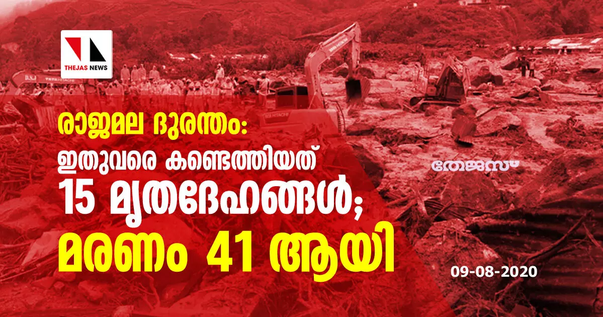 രാജമല ദുരന്തം: ഇതുവരെ കണ്ടെത്തിയത് 15 മൃതദേഹങ്ങള്; മരണം 41 ആയി