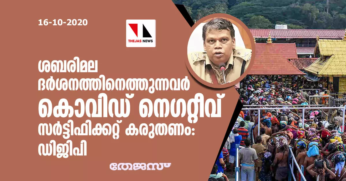 ശബരിമല ദര്ശനത്തിനെത്തുന്നവര് കൊവിഡ് നെഗറ്റീവ് സര്ട്ടിഫിക്കറ്റ് കരുതണം: ഡിജിപി