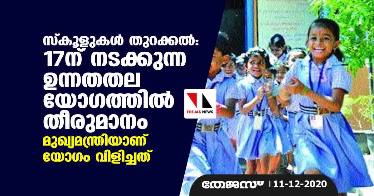 സ്കൂളുകൾ തുറക്കൽ: 17ന് ചേരുന്ന ഉന്നതതല യോഗത്തിൽ തീരുമാനം