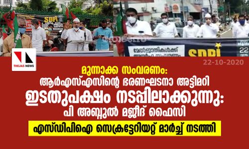 നയതന്ത്ര ബാഗേജുവഴി കോടിക്കണക്കിനു രൂപയുടെ സ്വര്ണ കള്ളക്കടത്തു നടത്തിയ കേസില് മുഖ്യമന്ത്രിയുടെ ഓഫിസും മുഖ്യമന്ത്രിയും പ്രതിക്കൂട്ടിലാണ്. എന്ഐഎ ഉള്പ്പെടെയുള്ള അന്വേഷണ ഏജന്സികള് പ്രോട്ടോക്കോള് ഓഫിസിലെ ഫയല് ആവശ്യപ്പെട്ടതിനിടെയാണ് അവിടെ തീപ്പിടുത്തമുണ്ടായത്. സ്വര്ണ കള്ളക്കടത്തു കേസിലെ പ്രതികള് നിരന്തരം സെക്രട്ടറിയേറ്റ് കയറിയിറങ്ങിയതിന്റെ തെളിവുകള് ആവശ്യപ്പെട്ടപ്പോള് അവിടുത്തെ സിസിടിവി കാമറകള് ഇടിമിന്നിലില് തകര്ന്നെന്നായിരുന്നു മറുപടി. ഇടിമിന്നലിലും തീപ്പിടുത്തത്തിലും സുരക്ഷിയില്ലാത്ത സ്ഥലമാണോ സെക്രട്ടറിയേറ്റെന്ന് അദ്ദേഹം ചോദിച്ചു. മടിയില് കനമുള്ളവനേ വഴിയില് ഭയപ്പെടേണ്ടതുള്ളൂ എന്നാണ് പിണറായി വിജയന് പറയുന്നത്. ഇപ്പോള് ആര്ക്കാണ് ഭയമെന്ന് വ്യക്തമായിരിക്കുന്നു. തീപ്പിടിത്തം സംബന്ധിച്ച ഗൂഢാലോചന പുറത്തുകൊണ്ടുവരണം. പ്രോട്ടോക്കോള് ഓഫിസര്ക്ക് കൊവിഡ് രോഗം ബാധിച്ച പശ്ചാത്തലത്തില് ഓഫിസ് അടച്ചപ്പോള് അവിടെയെത്തിയ രണ്ട് പേര് ആരാണെന്നു വ്യക്തമാവേണ്ടതുണ്ട്. ഇത് അത്യന്തം ഗൗരവതരമാണ്. കൊവിഡ് രോഗവ്യാപന ഭീതിയില് സ്വയം നിയന്ത്രിച്ച് വീട്ടില് കഴിയേണ്ടവര് പിണറായി സര്ക്കാരിന്റെ പിടിപ്പുകേടും കെടുകാര്യസ്ഥതയും മൂലം റോഡിലിറങ്ങി സമരം ചെയ്യേണ്ട അവസ്ഥയിലാണ്. ചോദ്യങ്ങളുന്നയിക്കുന്ന മാധ്യമങ്ങളോട് കടക്കൂ പുറത്തെന്നു പറയുന്ന പിണറായി വിജയനോട് കേരളത്തിലെ ജനങ്ങള് ഒന്നടങ്കം പറയുന്നൂ മിസ്റ്റര് പണറായി അധികാരത്തില് നിന്നു കടക്കൂ പുറത്ത്. അഴിമതിയും തെളിവു നശിപ്പിക്കാനുമുള്ള ഗൂഢതന്ത്രങ്ങളും ആവര്ത്തിക്കുമ്പോള് കേരളം ഐതിഹാസികമായ സമരത്തിന് വേദിയാവുകയാണെന്നും അദ്ദേഹം പറഞ്ഞു. പാളയം ജങ്ഷനില് നിന്നാരംഭിച്ച മാര്ച്ച് സെക്രട്ടറിയേറ്റിനു മുമ്പില് പോലിസ് ബാരിക്കേഡ് സ്ഥാപിച്ച് തടഞ്ഞു. തുടര്ന്ന് മുദ്രാവാക്യം വിളിച്ച പ്രവര്ത്തകര്ക്കുനേരേ പോലിസ് ജലപീരങ്കി പ്രയോഗിച്ചു. പ്രതിഷേധത്തിനിടെ മുഖ്യമന്ത്രി പിണറായി വിജയന്റെ കോലം കത്തിച്ചു. ജില്ലാ പ്രസിഡന്റ് സിയാദ് കണ്ടല, ജില്ലാ ജനറല് സെക്രട്ടറി അഷറഫ് പ്രാവച്ചമ്പലം, ജില്ലാ സെക്രട്ടറി ഷബീര് ആസാദ്, ജില്ലാ വൈസ് പ്രസിഡന്റ് അബ്ദുല് സലാം വേലുശ്ശേരി നേതൃത്വം നല്കി.