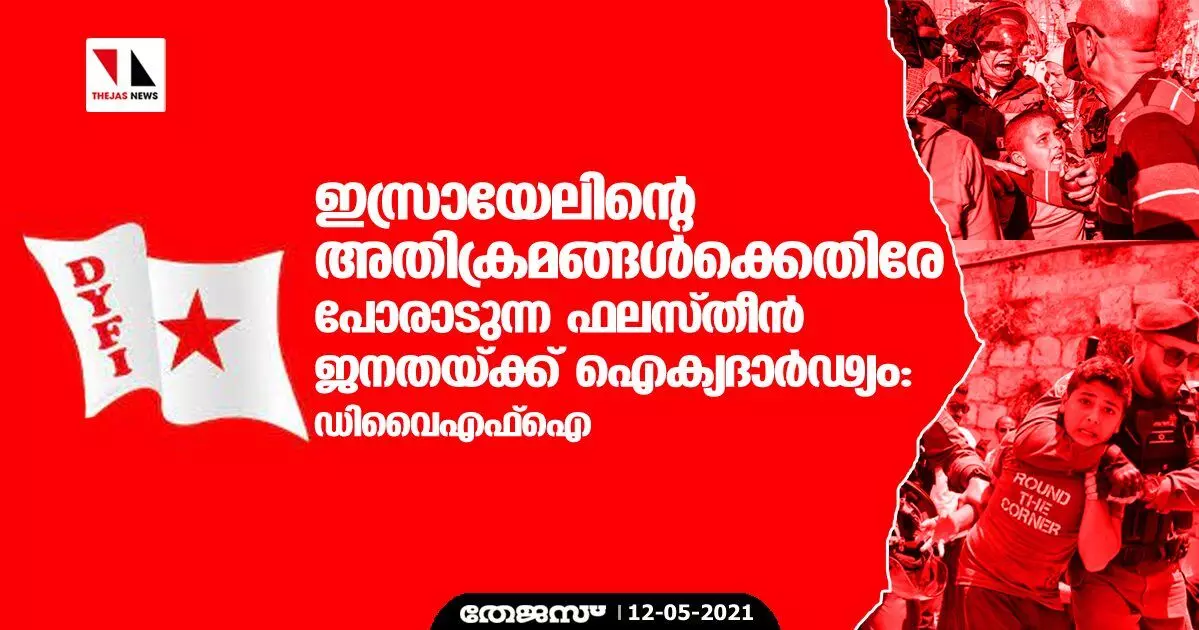 ഇസ്രായേലിന്റെ അതിക്രമങ്ങൾക്കെതിരേ പോരാടുന്ന ഫലസ്തീൻ ജനതയ്ക്ക് ഐക്യദാർഢ്യം: ഡിവൈഎഫ്ഐ