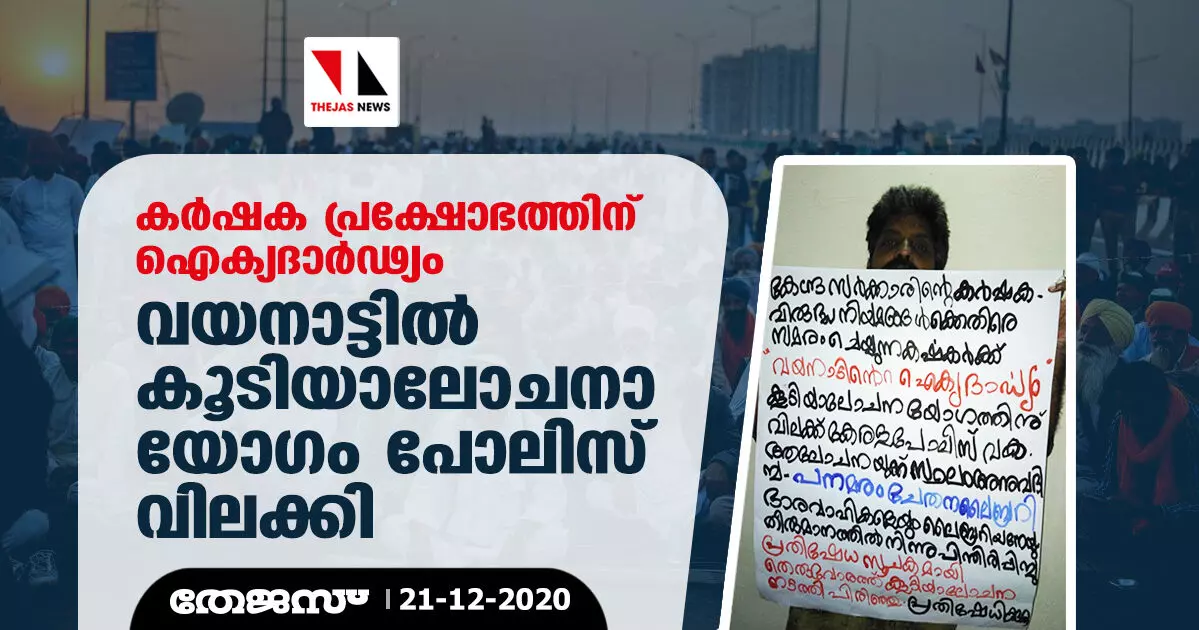 കർഷക പ്രക്ഷോഭത്തിന് ഐക്യദാർഢ്യം; വയനാട്ടിൽ കൂടിയാലോചനാ യോഗം പോലിസ് വിലക്കി