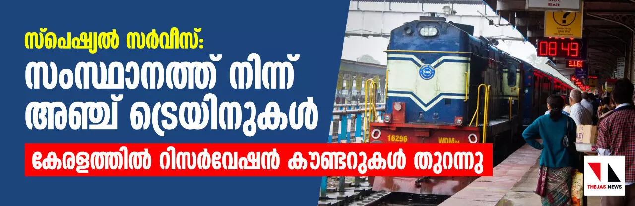 സ്പെഷ്യല് സര്വീസ്; സംസ്ഥാനത്ത് നിന്ന് അഞ്ച് ട്രെയിനുകള്, റിസര്വേഷന് കൗണ്ടറുകള് തുറന്നു